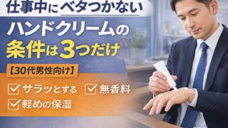 ① タイミングを気にしすぎてしまう正直なところ、「ハンドクリーム塗りたいけど、いつ塗るのが正解なんだろう?」これ、ずっと迷ってました。手が乾いてきて、「今ちょっと塗りたいな」と思っても、・今は人前だしな・これから商談だしな・失礼に見えないか...